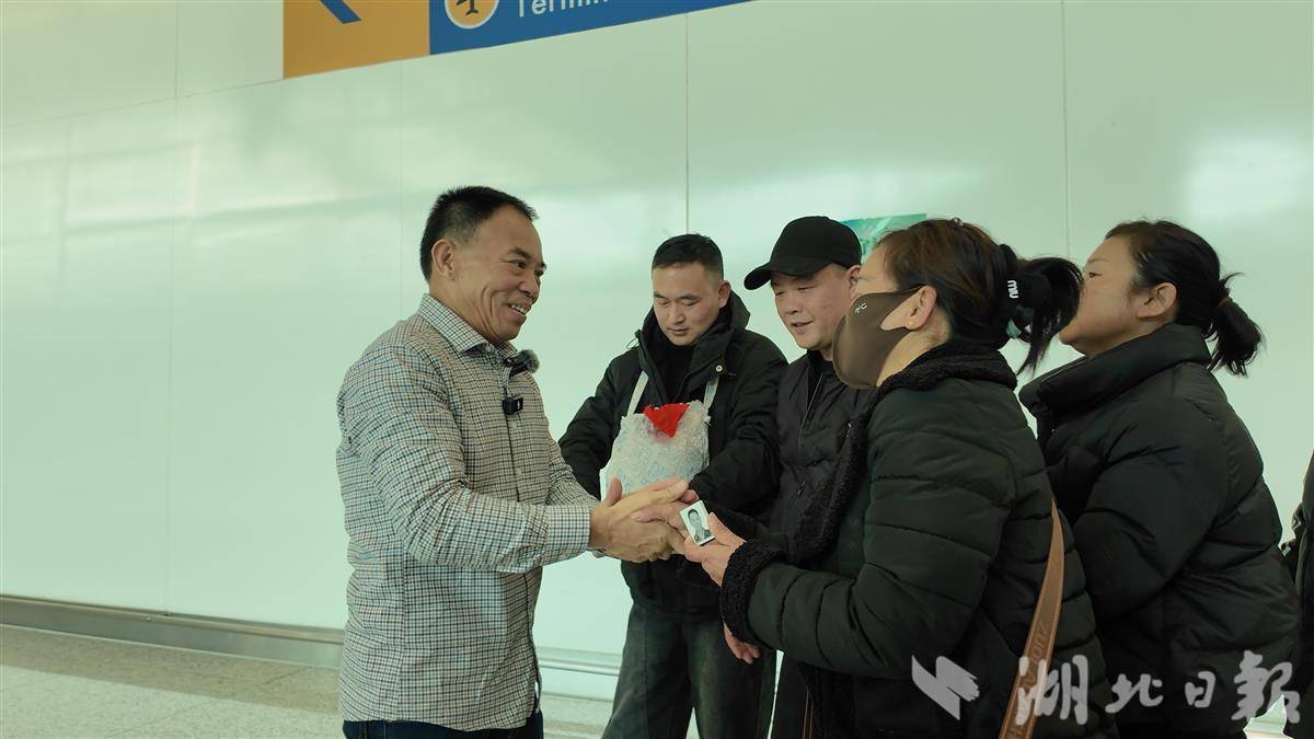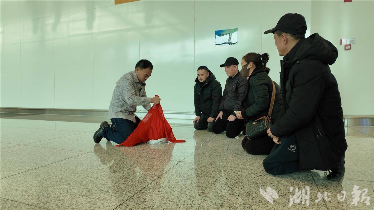 “骆伯伯,到家啦,到最亲的土地啦。”1月9日,武汉天河机场,一场特殊的骨灰交接仪式在这里举行:刚下飞机的台胞刘德文,将湖北籍老兵骆传知的骨灰,郑重交给从嘉鱼县赶来的孙子骆训都、孙女骆训枝等亲属。